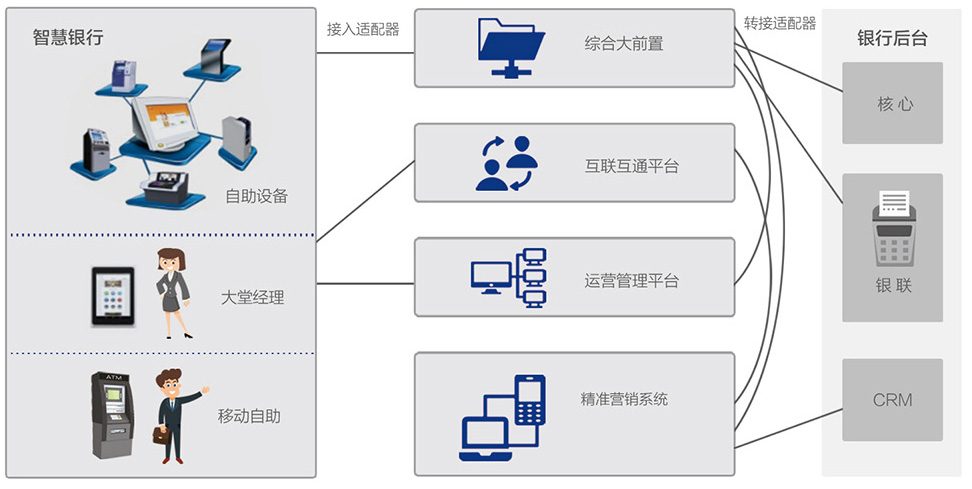智慧金融整體解決方案主要是針對銀行及各行業(yè)營業(yè)網(wǎng)點(diǎn)場所打造的一體化解決方案。